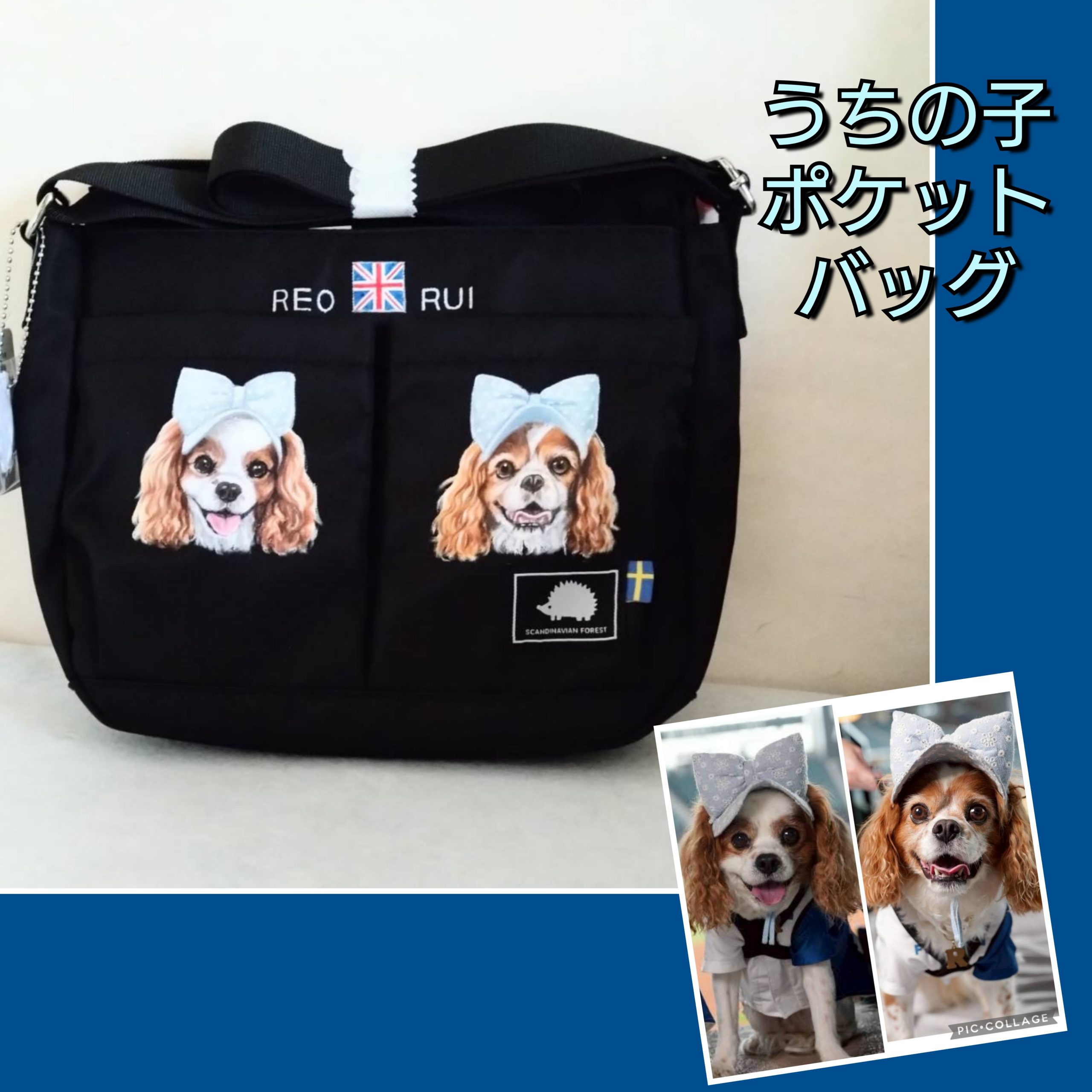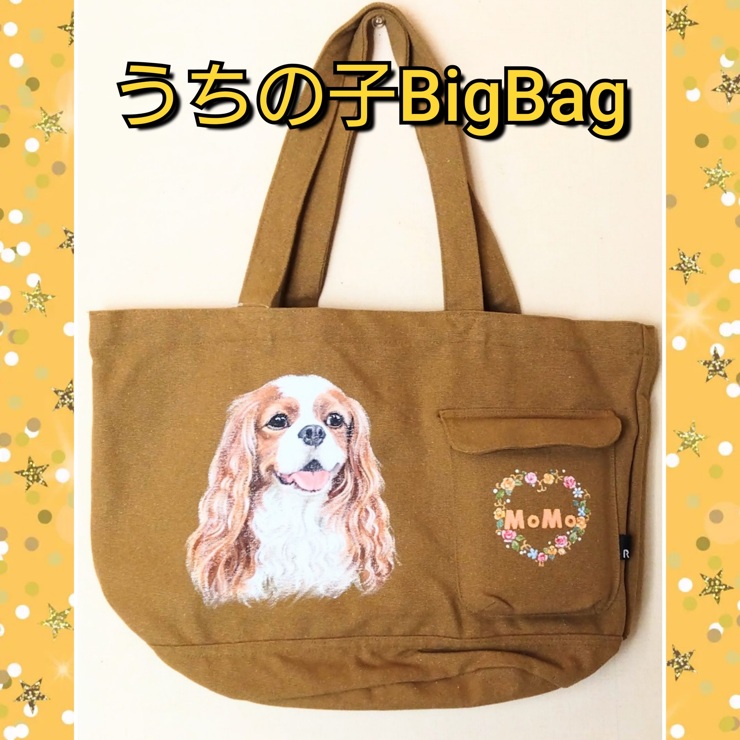 ペットの似顔絵が付いたちょっと大きめのバッグ、お出かけ先で注目間違いなし(^^♪似顔絵をきっかけに新しいお友達も出来るかも知れませんね