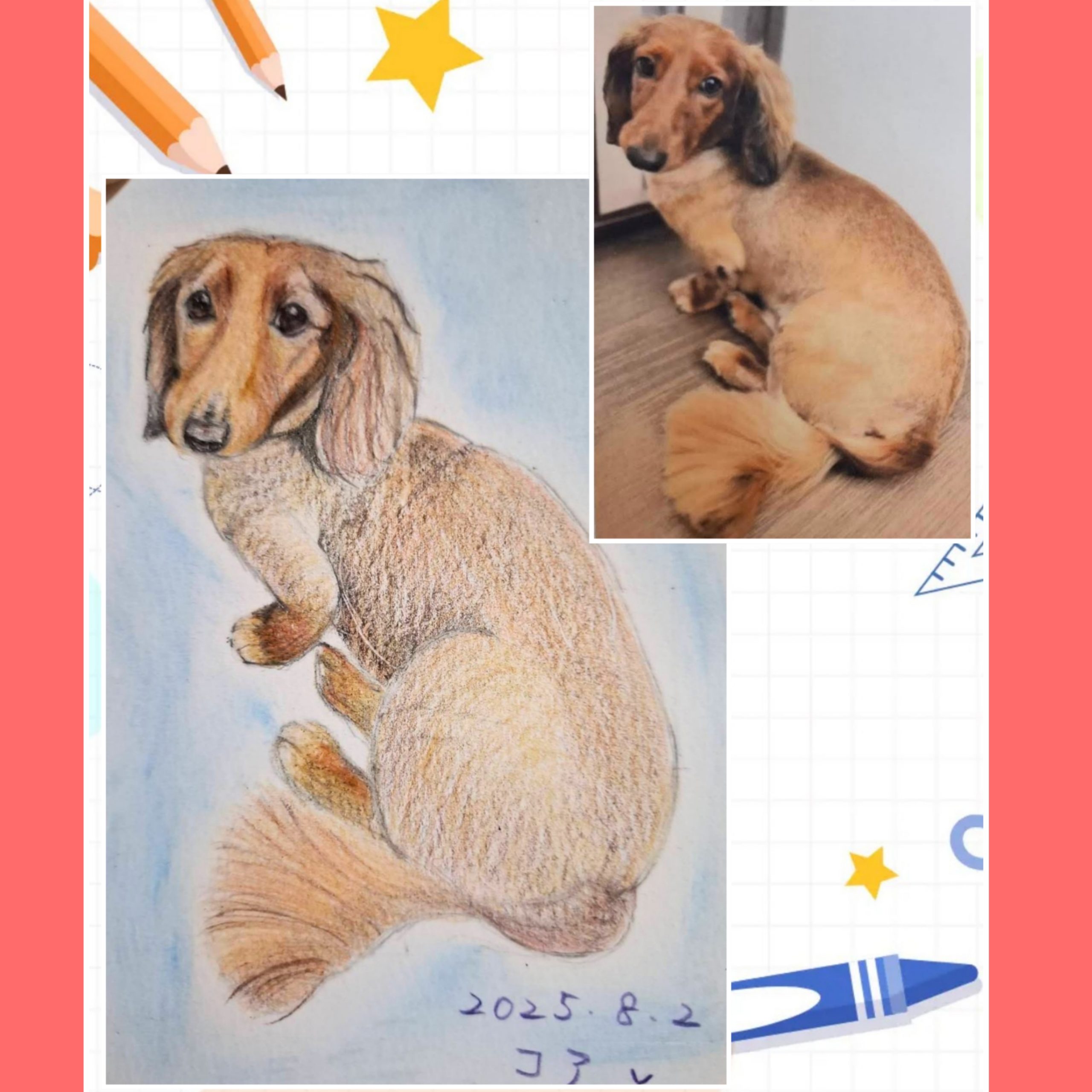 ダックスフントのコアちゃん。今回は全身画・・しかもちょっと変わったポーズを描いて頂きました